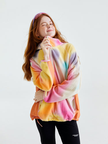 The dual-layer design ensures four-way stretch and perfect printing on both sides and offers a unique draping effect, giving the garment a crisp and structured look compared to standard fleece, making it suitable for all body types.